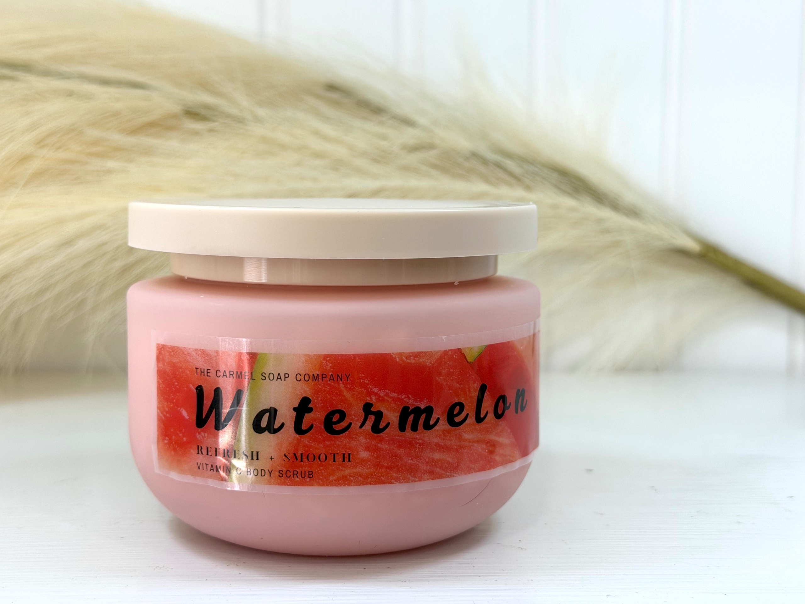 An exfoliating body scrub featuring a refreshing watermelon scent and hydrating benefits, designed to gently smooth and rejuvenate the skin.